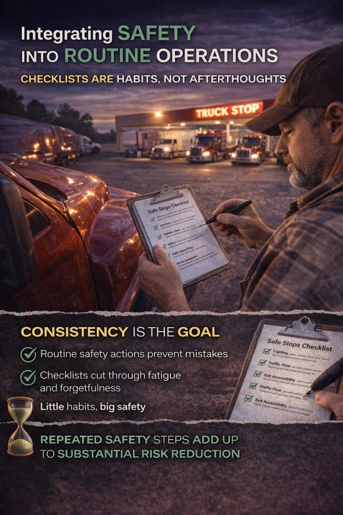 A driver safety checklist is only effective when it is habitual. Safe stops should not rely on memory alone, especially when fatigue is present. Repetition creates automatic behaviors that ensure drivers’ safety on even the most difficult days.