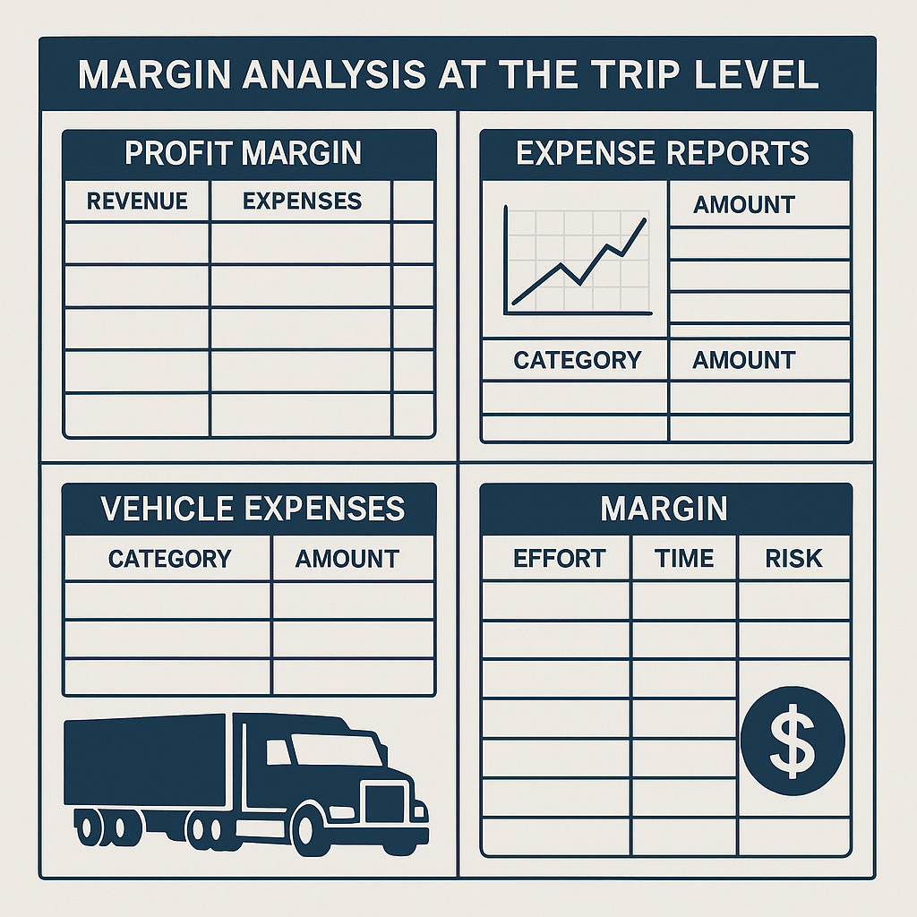 Margin analysis ties everything together. In trucking, profit margin does not only involve the assumptions of revenue and expenses. It refers to the interplay of effort, time, risk, and return. A scenario could involve a truck coming with a high gross rate but suffering excessive downtime that finally leaves the driver with a weaker margin than if traveling a less lucrative but efficient route. Margin analysis essentially in trip accounting enables operators to judge the trips without feeling emotional about it.
