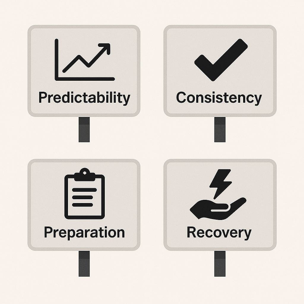 | Weekly structure | Stable driver efficiency | Reactive driving |